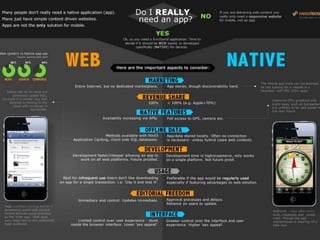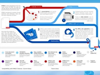 This document discusses the development of web applications and introduces web development frameworks. It covers the history of computer applications and languages, challenges of multi-platform mobile app development, and the evolution of web technologies enabled by HTML5. It then analyzes the current state of web development frameworks, including debugging tools, IDEs, JavaScript libraries and frameworks, UI frameworks, data/logic frameworks, and cross-platform frameworks.