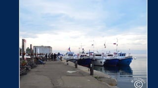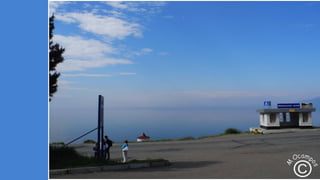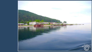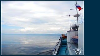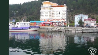 Lake Baikal is the oldest and deepest lake in the world, located in Siberia and containing 20% of the world's unfrozen freshwater. The document shares photos and details experiences at Lake Baikal, including views from a hotel on the shore, the Baikal Limnological Museum which explores the lake's history and wildlife, an open air market, a foggy cruise on the lake, and a wedding tradition on the lakeshore.