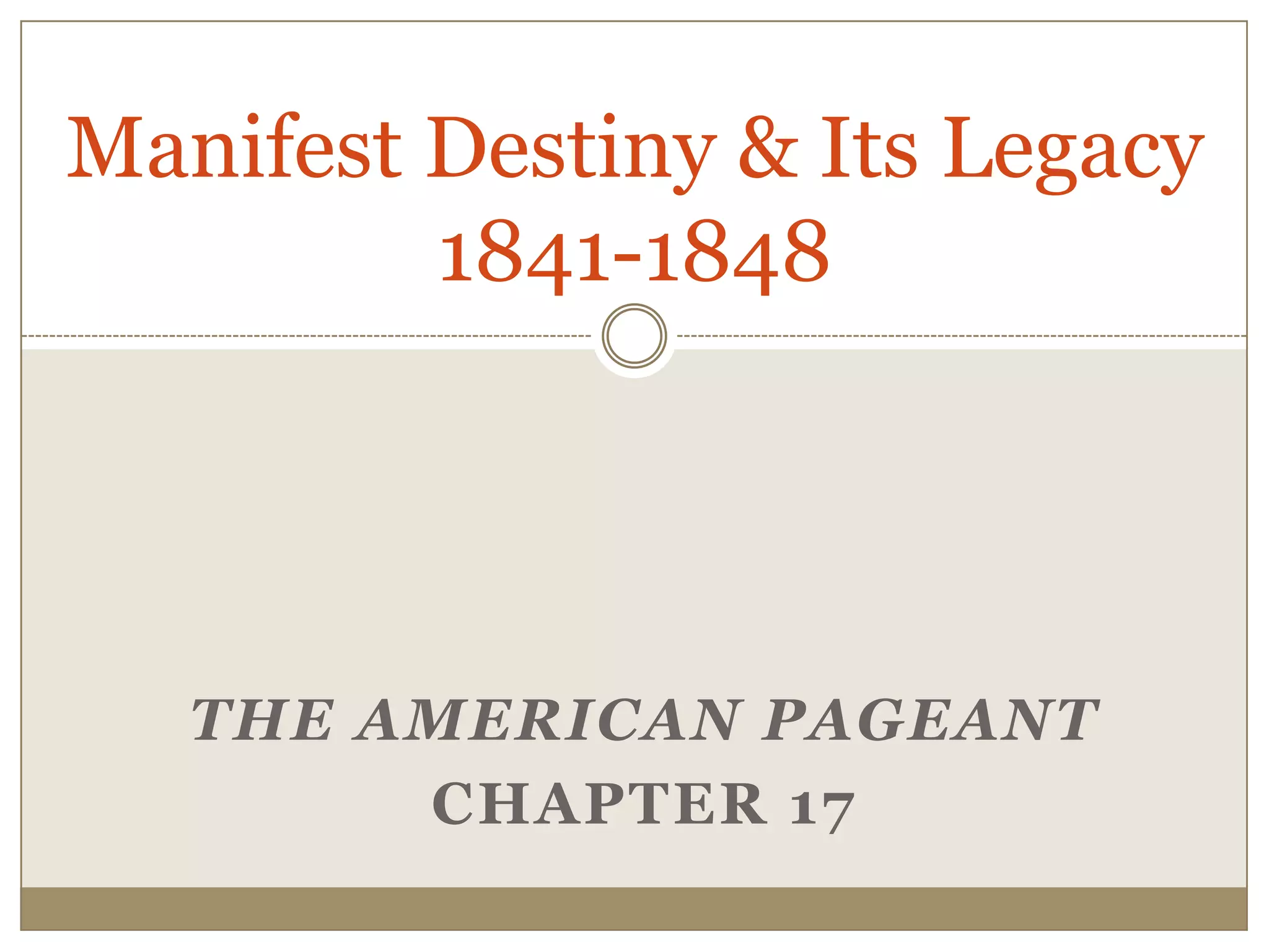 1) The document discusses the expansion of the United States in the 1840s under the ideology of Manifest Destiny, which held that American settlers were destined to expand across North America.