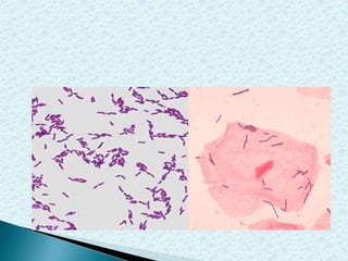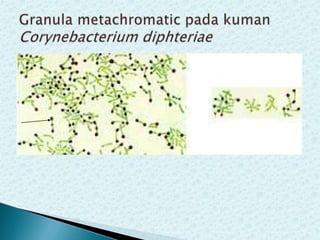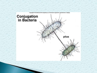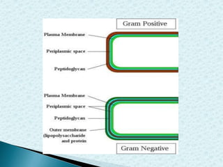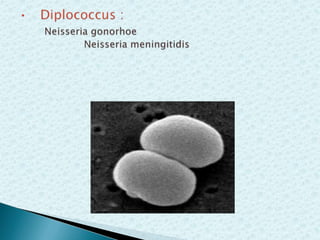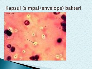 Dokumen tersebut membahas tentang bakteri secara umum, mulai dari definisi, struktur sel, klasifikasi berdasarkan bentuk dan pewarnaan Gram, mekanisme pergerakan, dan faktor yang mempengaruhi pertumbuhan bakteri."