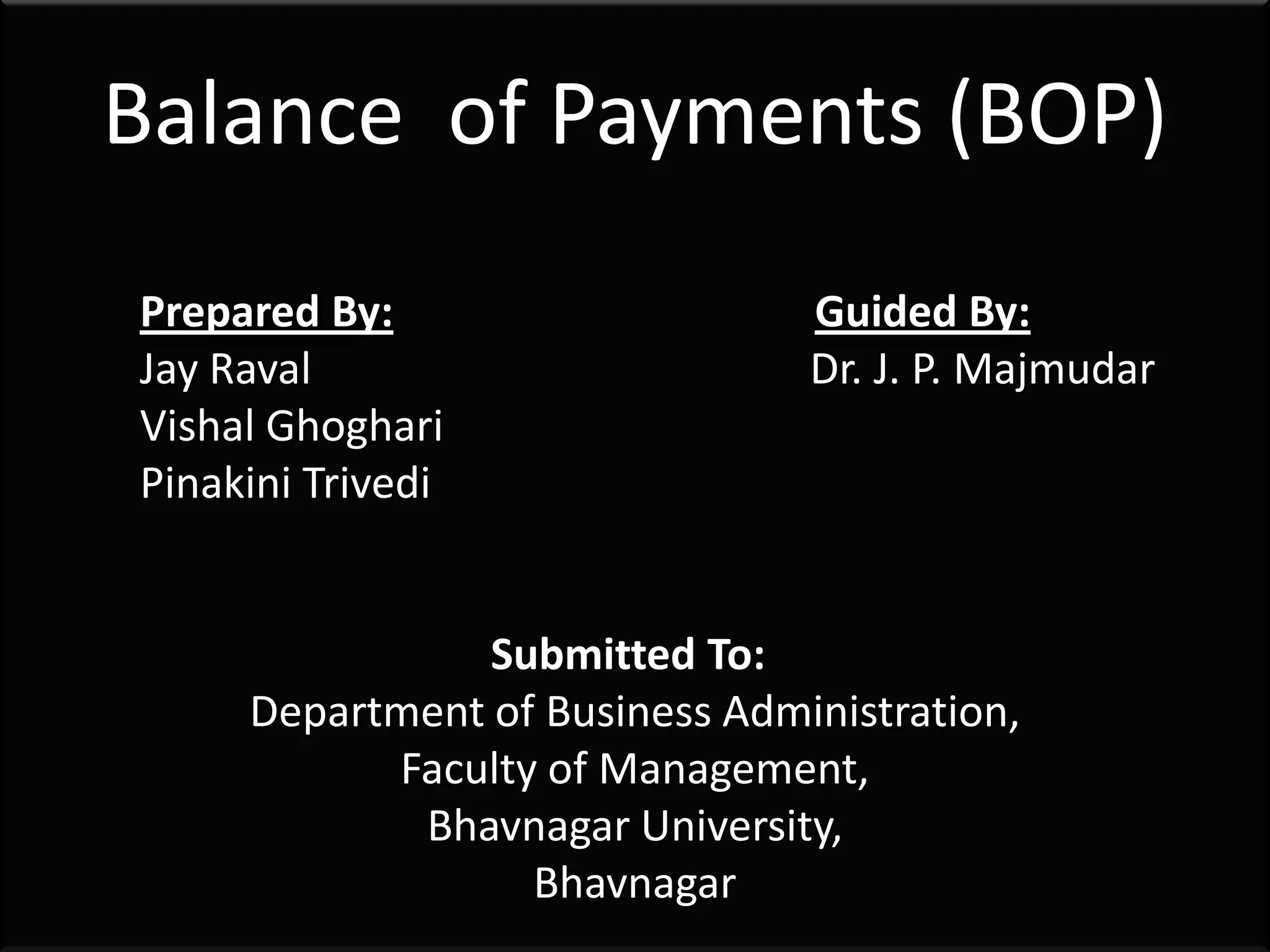The document summarizes India's balance of payments (BOP) over several years. It finds that: