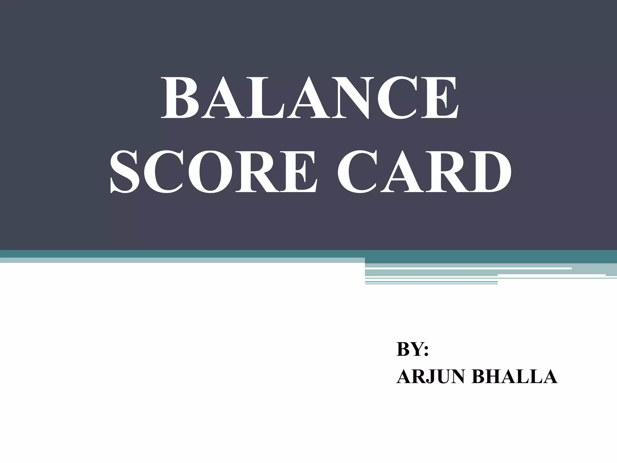 The document discusses the Balanced Scorecard, a strategic planning and management system used to align business activities with organizational vision and strategy. It does this by monitoring performance against strategic goals across four perspectives: financial, customer, internal business processes, and learning and growth. Key measures are identified for each perspective. The Balanced Scorecard framework translates strategy into objectives and measures across the four perspectives, allowing an organization to track strategic performance and progress.