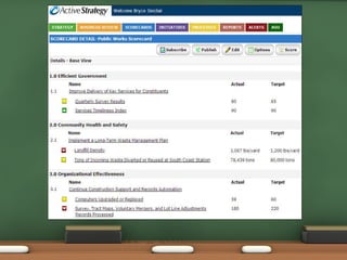The document discusses the implementation of a scorecard for evaluating worker performance and aligning human resources strategically with organizational goals. It outlines key metrics such as cost per hire and turnover rates, highlighting the importance of defining HR deliverables and conducting cost-benefit analyses. Additionally, it explores the use of balanced scorecards in various sectors to improve performance by linking organizational vision to individual performance and operational goals.