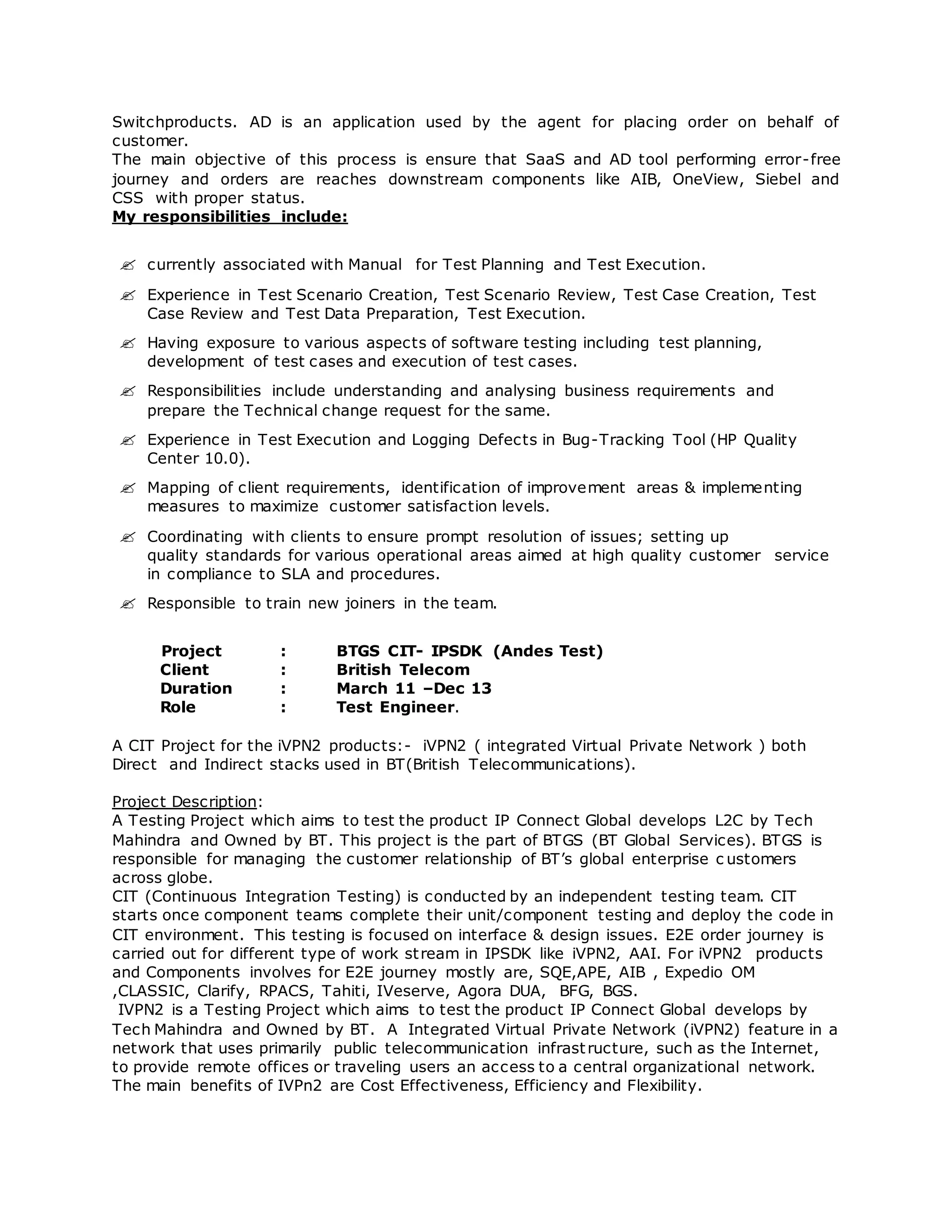 The resume summarizes the qualifications and experience of Balasai R. He has 4 years of experience in Selenium testing and manual testing. He has expertise in writing Selenium scripts in Java and knowledge of Selenium IDE, RC, and locators. He has worked as a Test Engineer on projects for British Telecom in the UK, testing order journeys, defect tracking, and requirements analysis. He is proficient in tools like HP Quality Center and has received awards for his job performance.