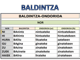 BALDINTZERAzko aditzak