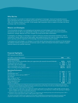 1) Ball Corporation is a provider of metal and plastic packaging for beverages, foods and household products, as well as aerospace technologies and services. 2) In 2006, Ball expanded its product portfolio and global footprint through acquisitions but faced challenges from inflationary pressures and a plant fire in Germany. 3) While free cash flow was lower than expected in 2006 due to high raw material inventories, Ball expects free cash flow to reach at least $350 million in 2007 as materials are drawn down and strategic actions from 2006 provide benefits.