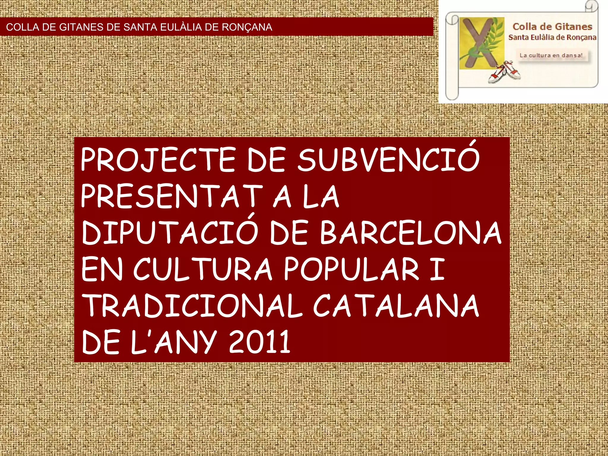 PROJECTE DE SUBVENCIÓPRESENTAT A LA DIPUTACIÓ DE BARCELONA EN CULTURA POPULAR I TRADICIONAL CATALANA DE L’ANY 2011 COLLA DE GITANES DE SANTA EULÀLIA DE RONÇANA