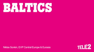 This document discusses Tele2's position in the Baltic telecommunications market. It notes that Tele2 has strong market positions in Latvia and Lithuania as the number 2 and number 1 provider respectively, and is working to improve profitability in Estonia where it is number 3. It also describes Tele2's investments in upgrading its network infrastructure in the Baltic region to modernize base stations and increase coverage. This will allow Tele2 to rollout LTE services and capitalize on increasing customer data usage.