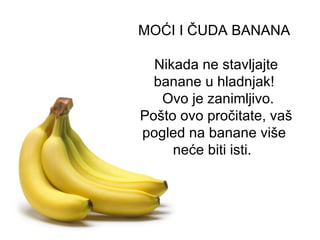 Banane su nutritivno bogato voće koje sadrži prirodne šećere, vlakna i važan je izvor energije, te pomažu u poboljšanju raspoloženja i prevenciji raznih bolesti. Istraživanja sugeriraju da konzumacija banana može smanjiti rizik od srčanih bolesti, pomoć kod anemije, smanjenje stresa i regulaciju krvnog tlaka. Osim prehrambenih benefita, banane se mogu koristiti i kao prirodni lijek za razne zdravstvene probleme.