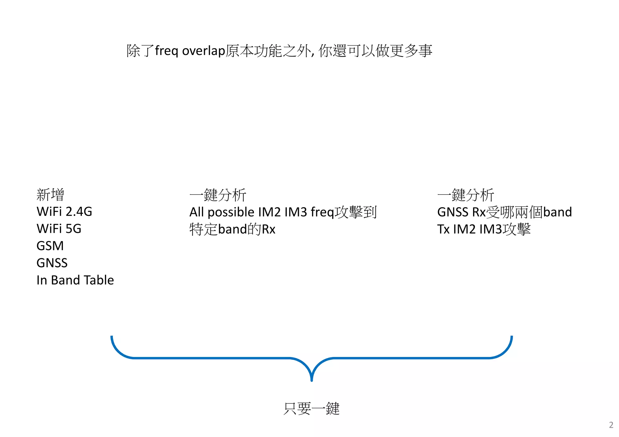 该文档是一个用户手册,介绍了新的频率计算工具,可以一键分析各种频段的干扰和重叠情况,包括Wi-Fi和GNSS的信号。手册详细列出了2.4GHz和5GHz的信道频率,以及其他频段可能遭受的干扰情况。用户可通过简化操作,快速定位特定频率的攻击或干扰信息。