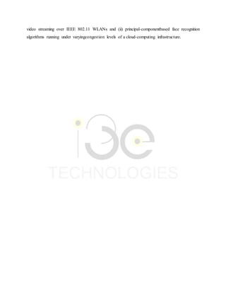 The document presents a bandit framework for improving video-based face recognition on mobile devices that face challenges from wireless transmission contention and cloud task congestion. It proposes a systematic learning method using multi-user multi-armed bandits to optimize transmission and resource allocation, demonstrating faster convergence than traditional reinforcement learning in dynamic environments. Performance is validated through simulations involving contention-based video streaming and face recognition algorithms under varying conditions.