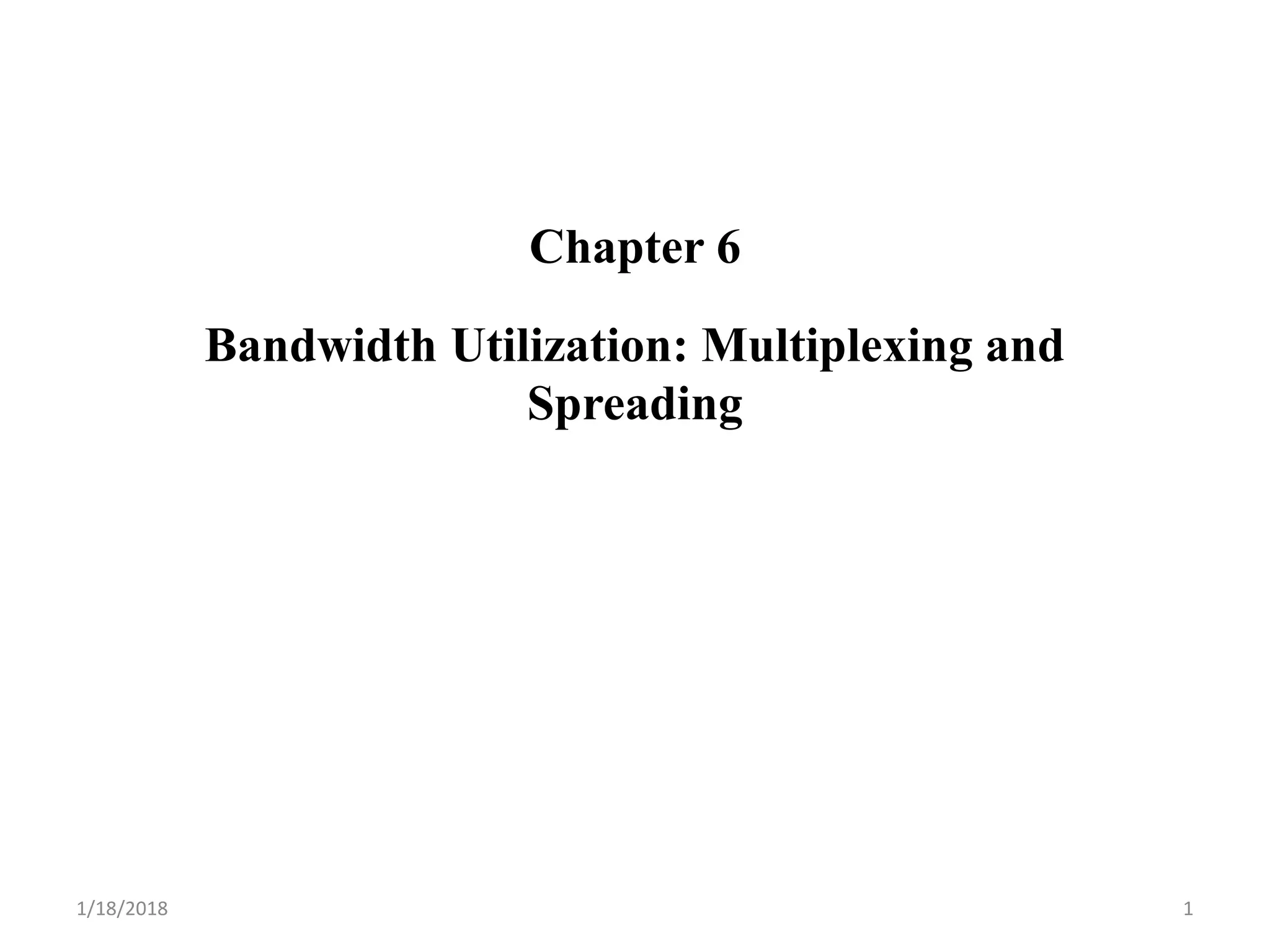 Bandwidth utilization techniques like multiplexing and spreading can help efficiently use available bandwidth. Multiplexing allows simultaneous transmission of multiple signals over a single data link by techniques like frequency division multiplexing (FDM), wavelength division multiplexing (WDM), and time division multiplexing (TDM). FDM divides the link into frequency channels. WDM is similar but uses light signals transmitted through fiber. TDM divides the link into timed slots and allows digital signals to share the bandwidth. Efficiency can be improved through techniques like multilevel multiplexing, multiple slot allocation, and pulse stuffing to handle disparities in data rates.