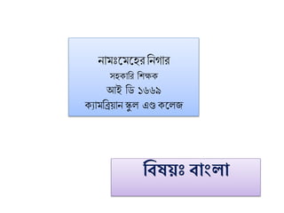 বিষয়ঃ িাাংলা নামঃমমমের ননগার সেকানর