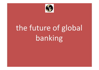 The document discusses the evolution of banking, highlighting the impact of technology on financial services, especially in regions with high unbanked populations like Asia. It emphasizes the cost-effectiveness of technology-driven transactions versus traditional branch banking, with companies like ICICI Bank demonstrating significant shifts in transaction methods. Additionally, the document notes potential shifts in market share among exchanges in Europe influenced by best price routing, indicating a broader trend towards operational efficiency and innovation in banking services.