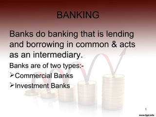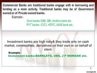 Investment banks perform several key functions: they advise corporations on mergers and acquisitions and help raise capital through arranging debt and equity financing; they engage in trading and market making activities for both their own accounts and on behalf of clients; and they provide research on markets, economies, and industries. Investment banks generate revenue primarily from fees earned through mergers and acquisitions advisory work, trading and underwriting of equity and debt instruments, and fees from products constructed for investors.