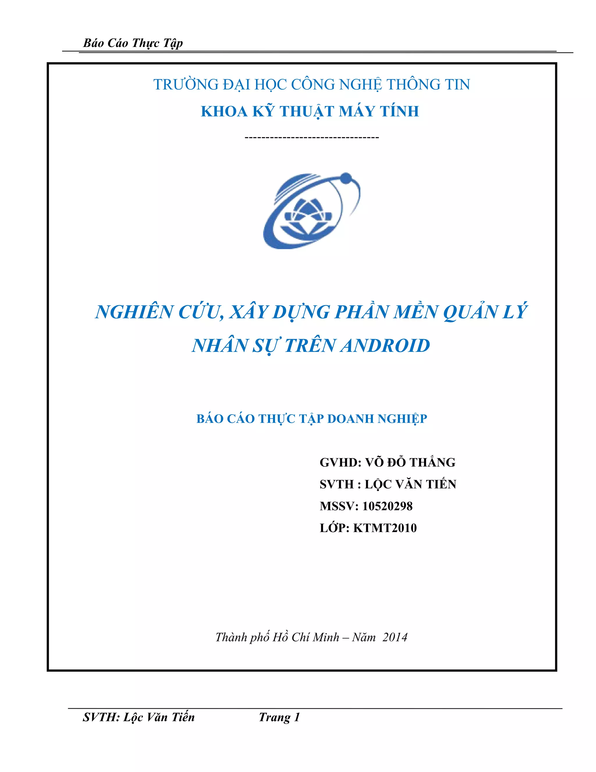 Báo cáo thực tập của sinh viên Lộc Văn Tiến tại trung tâm Athena tập trung vào nghiên cứu và xây dựng phần mềm quản lý nhân sự trên Android. Trong khoảng thời gian thực tập, sinh viên đã tiếp thu nhiều kiến thức bổ ích và cải thiện kỹ năng thực hành cần thiết cho sự nghiệp tương lai. Báo cáo cũng ghi nhận sự hỗ trợ tận tình từ giảng viên và nhân viên tại trung tâm.