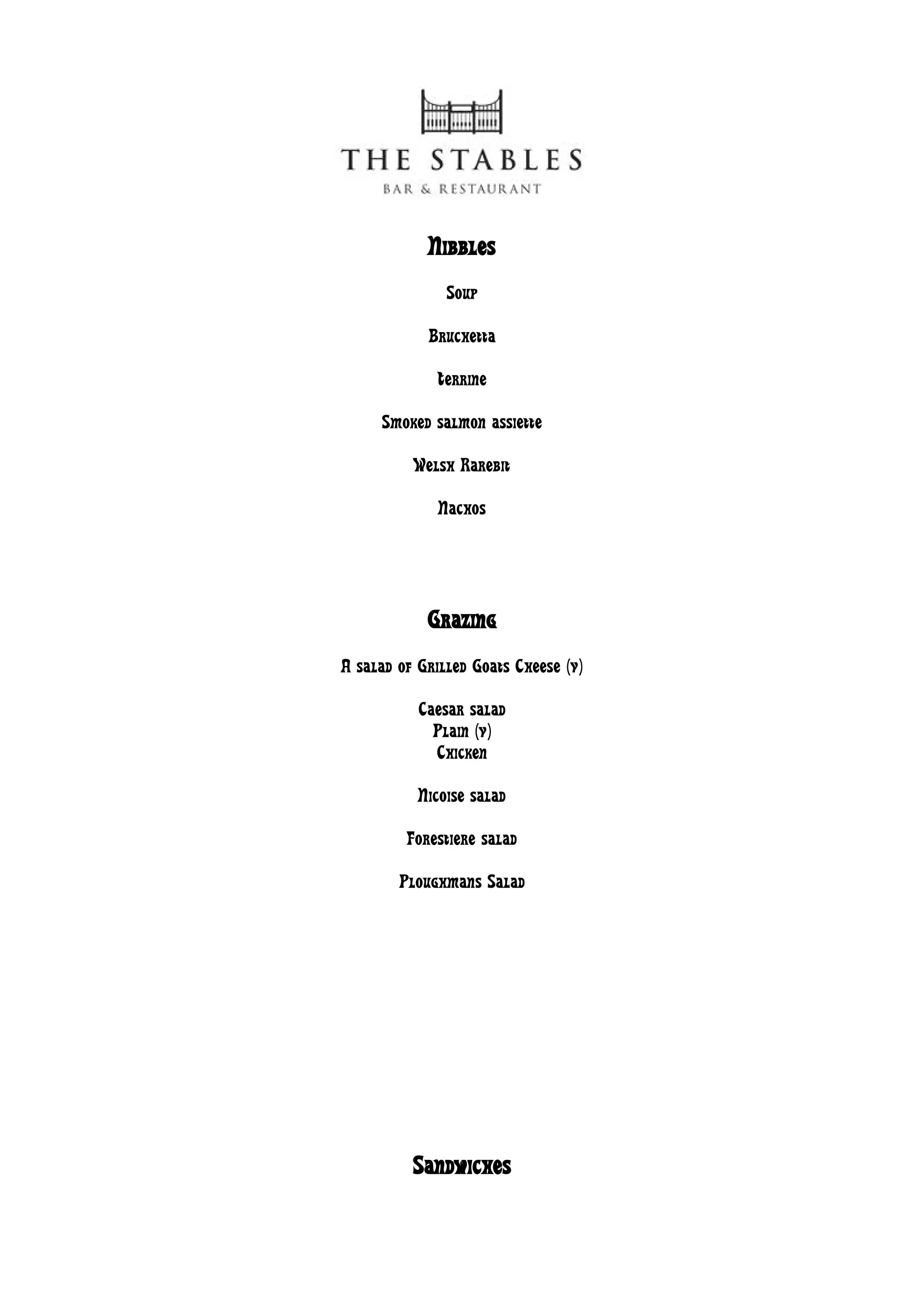 This document provides a menu for a restaurant or event space. It lists options for grazing dishes, salads, sandwiches, sharing platters, main courses including options from the grill and vegetarian dishes, and desserts. Dishes include soups, bruschetta, terrine, smoked salmon, Welsh rarebit, nachos, various salads, open or closed sandwiches on bread with a variety of fillings, individual and sharing meat and seafood platters from around the world, an all day breakfast, fish and chips, hot pot, lasagna, kebabs, various curries, roasts, carbonara, burgers, chops, ribs, fish, mussels, vegetable curry and byriani
