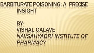 The document provides an overview of barbiturates, including their definitions, classification, mechanism of action, uses, and toxic effects. It outlines the signs of barbiturate poisoning and recommended treatments, emphasizing that there is no specific antidote. The document also discusses postmortem appearances associated with barbiturate intoxication and references for further reading.