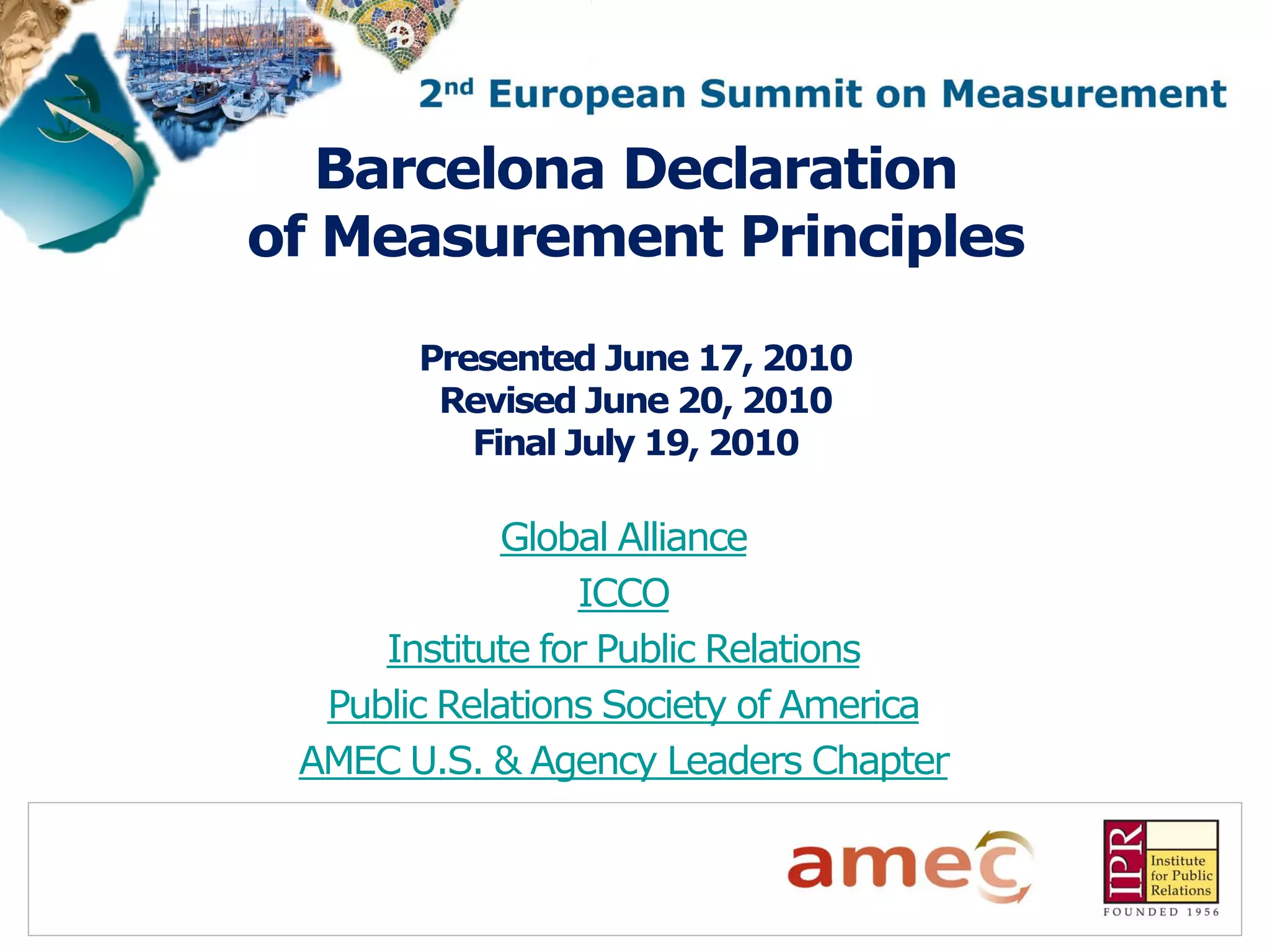 The Barcelona Declaration outlines 7 principles for effective public relations measurement: