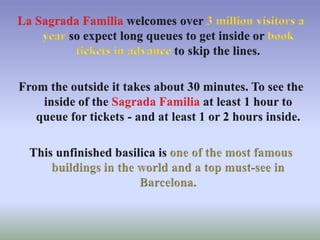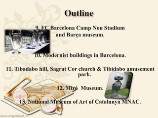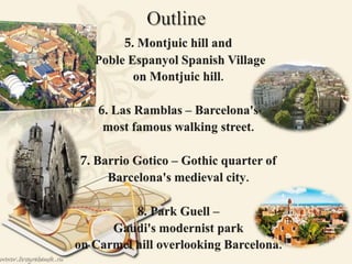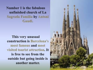 Barcelona attracts students with its young spirit and many affordable outdoor activities and cultural experiences. Some top free or low-cost things to do include exploring La Rambla, the Gothic Quarter, parks like Parc Guell and Montjuic, and museums dedicated to artists like Picasso and Miró. Famous landmarks like Sagrada Familia and Camp Nou stadium also offer insights into Barcelona's history and culture.