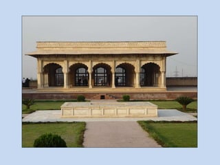 This document provides an overview of typology in Islamic architecture. It defines typology as the classification of buildings according to their common characteristics. In Islamic architecture, there are two main types of buildings - religious and secular. Religious buildings include mosques, tomb-mosques, tombs, khanqahs, imambargahs, and others. Secular buildings include forts, palaces, caravansarais, baolis, commemorative minarets, bridges, roads, gardens, baradaris, and town planning. The document then provides further details on some of these building types such as tomb-mosques combining tombs and mosques, khanqahs serving as spiritual retreat