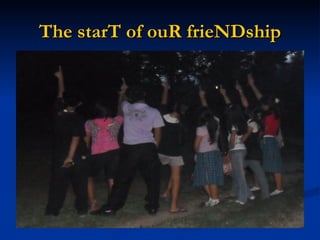 This document discusses bonding with friends through spending time together and sharing moments of friendship, love, happiness, and smiles. Emotions and funny times are experienced in the little periods spent bonding with friends at the start of their relationship.