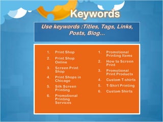 The document outlines a strategic online marketing plan for Barrel Maker Printing Co. to enhance customer engagement and community building in the Chicago area. Key strategies include increasing online visibility, improving customer interaction through social media, and forming partnerships with local businesses and schools. It emphasizes the need for effective communication, branding, and customer service to differentiate from competitors and achieve growth.