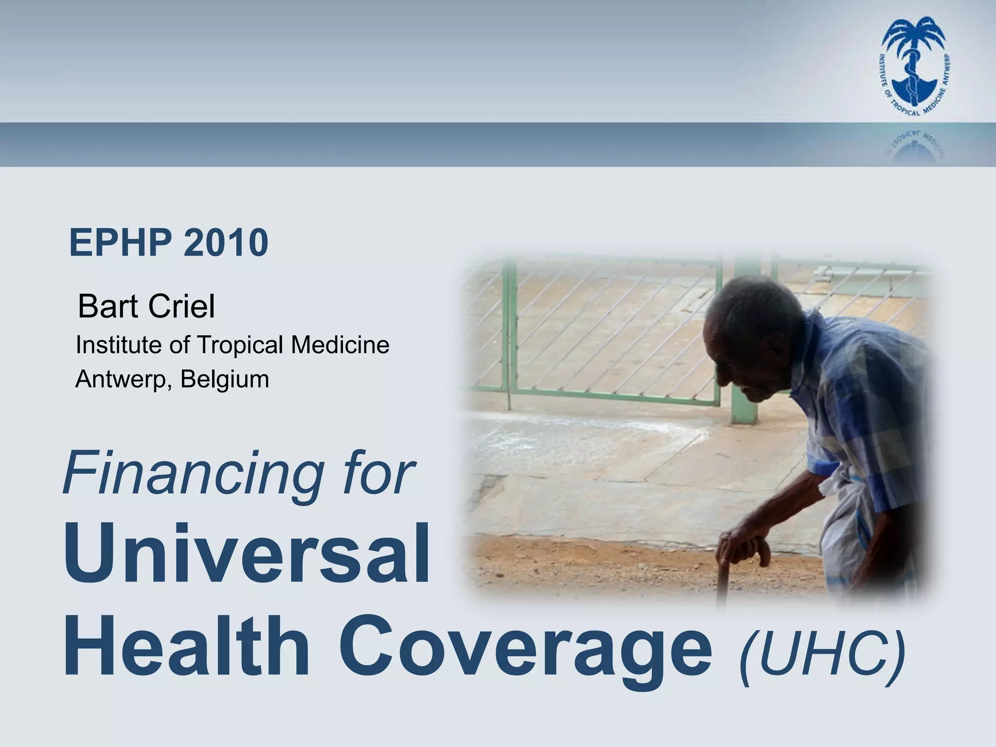 This document discusses universal health coverage (UHC) and challenges in achieving it. It notes that UHC aims for all people to access health services without financial hardship. Achieving UHC requires more resources, raising funds fairly, and efficient spending. Most countries spend too little. Out-of-pocket payments deter use and impoverish people. Pooled funds through prepayment are better. Research is needed to understand inequities and improve programs. Community involvement may help transform health insurance for the poor. More comprehensive systems combining financial, supply, and management reforms are needed to organize accessible, quality care for all.