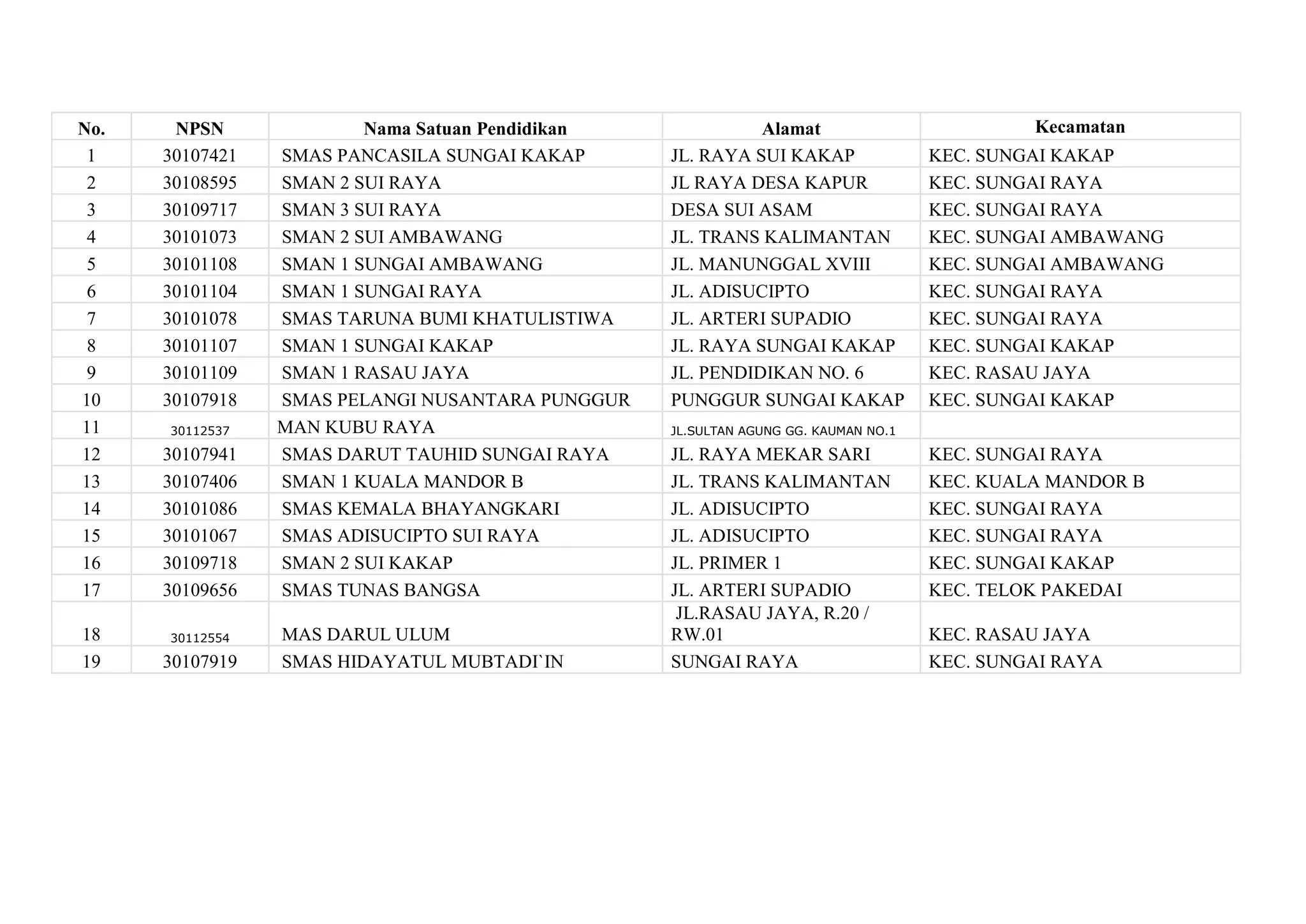KEC. SUNGAI RAYA