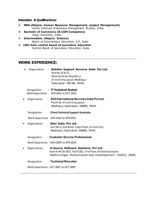 Barun Kumar is seeking a job that allows him to utilize his 5+ years of IT experience, including providing technical support for Dell and Deloitte. He has strong skills in troubleshooting hardware and software issues with computers, printers, and mobile devices. He is looking for an opportunity with an organization where he can grow and take on new challenges through hard work and enthusiasm.