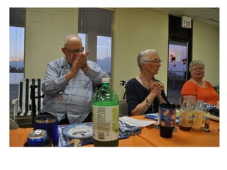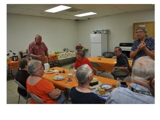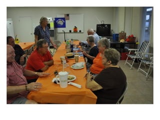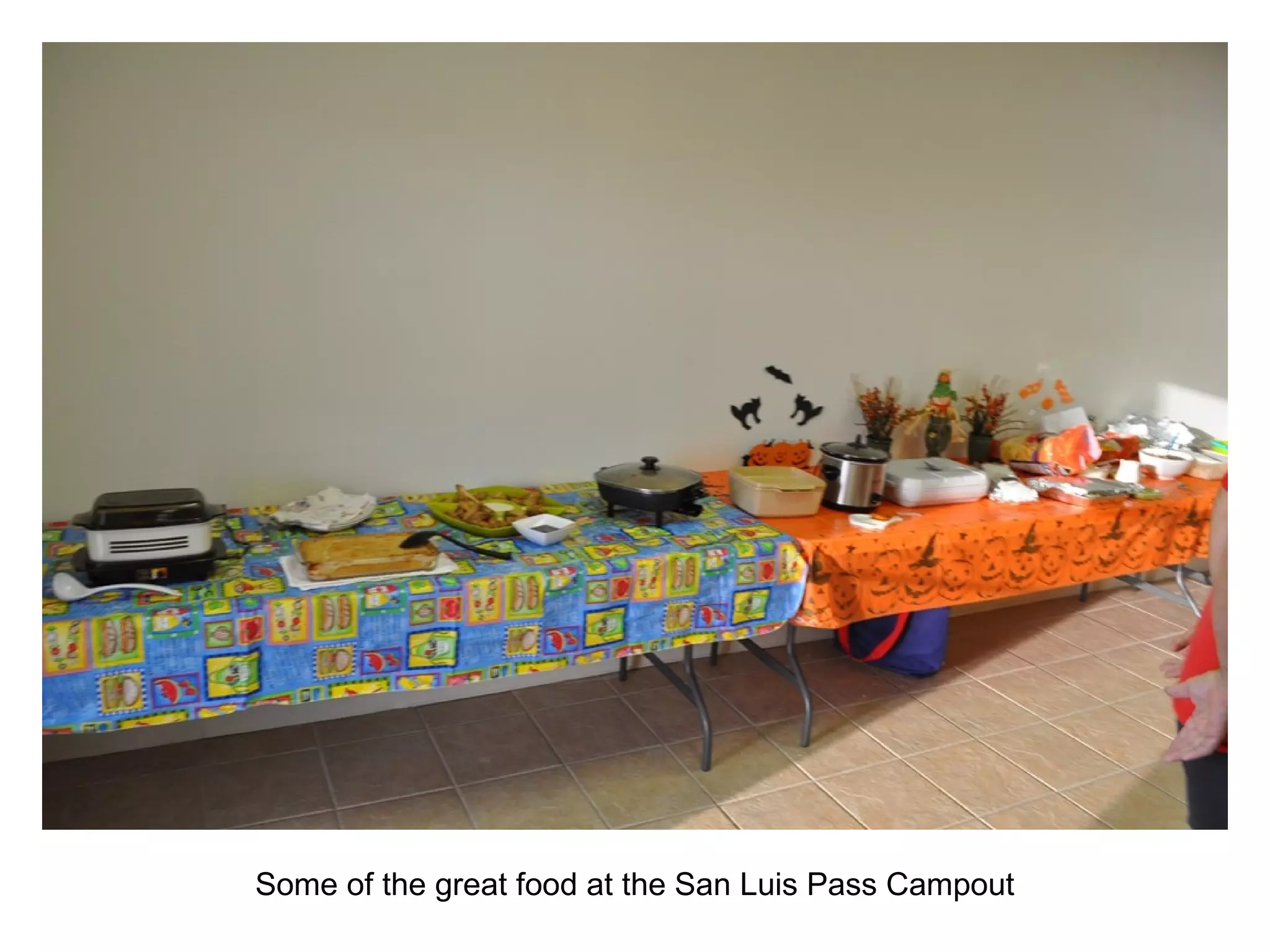 The document discusses some of the great food available at the San Luis Pass Campout event. It also mentions Out going President Bill passing leadership duties to the incoming President Don.