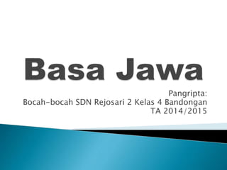 Dokumen ini membahas tentang berbagai jenis sekar macapat dan struktur dasar serta perubahan kata dalam bahasa Jawa, termasuk tembung lingga, tembung andhahan, tembung entar, tembung garba, dan tembung saroja. Setiap jenis sekar memiliki pola tertentu dalam jumlah suku kata dan rima. Selain itu, terdapat penjelasan mengenai imbuhan dan contohnya dalam pembentukan kata baru.