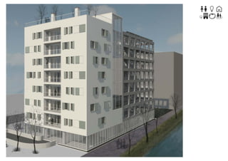 Il documento presenta un progetto di residenza collettiva focalizzato sul benessere e sul comfort microclimatico, integrando tecnologie passive e impianti a alto rendimento energetico. Viene proposta una configurazione tipologica articolata in diverse ipotesi di edificazione con spazi comuni ed aree verdi, sostenendo un modello di smart community. Le caratteristiche energetiche includono l'uso di energie rinnovabili e sistemi di gestione delle acque meteoriche, mirati a creare un ambiente di vita autonomo e intergenerazionale.