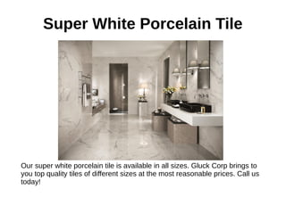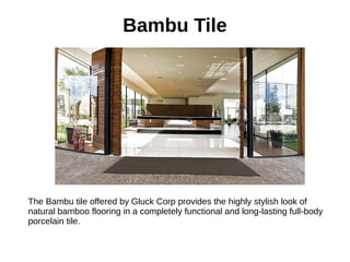 Gluck Corp offers a variety of high-quality porcelain tiles including stylish bamboo, super white, cement, and travertino options at reasonable prices. Each tile type boasts unique designs and finishes suitable for various interior decoration needs. Customers can contact Gluck Corp for inquiries and orders at their Doral, FL location or through their website.