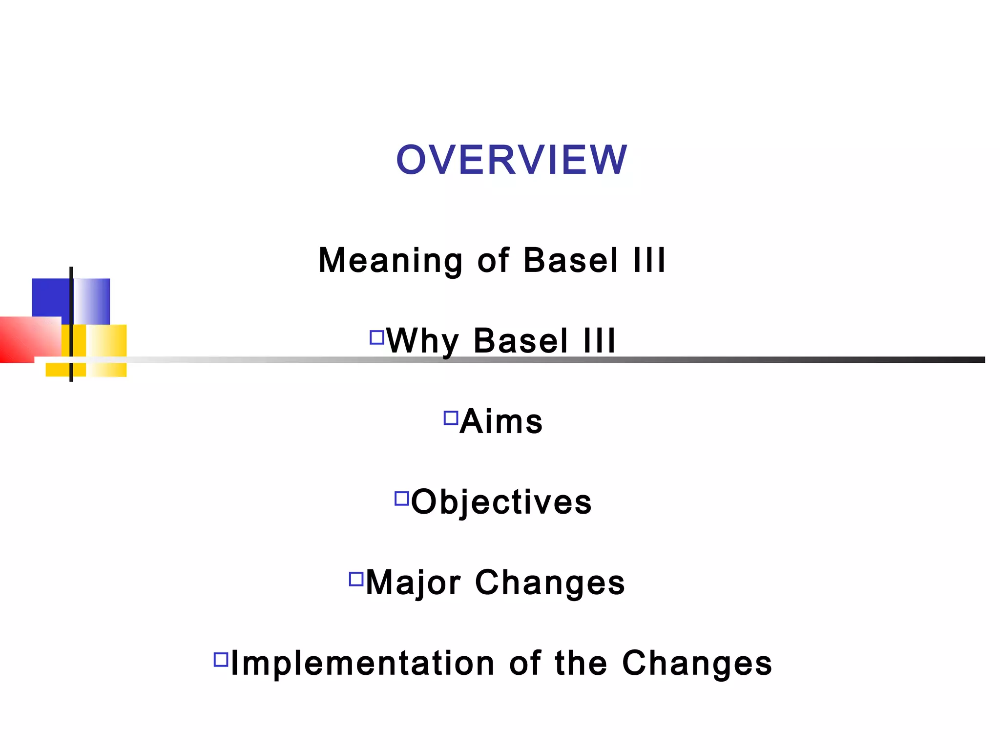 Basel III is a global regulatory standard that aims to strengthen bank capital requirements and introduce new regulatory requirements on bank liquidity and leverage. It was developed in response to deficiencies in previous regulations that contributed to the global financial crisis. The goals of Basel III include improving the banking sector's ability to absorb shocks from financial and economic stress, reducing risks, and strengthening transparency. Key changes under Basel III include higher and better quality capital buffers, introduction of leverage ratio, liquidity coverage ratio, net stable funding ratio, and capital surcharges for systemically important banks.