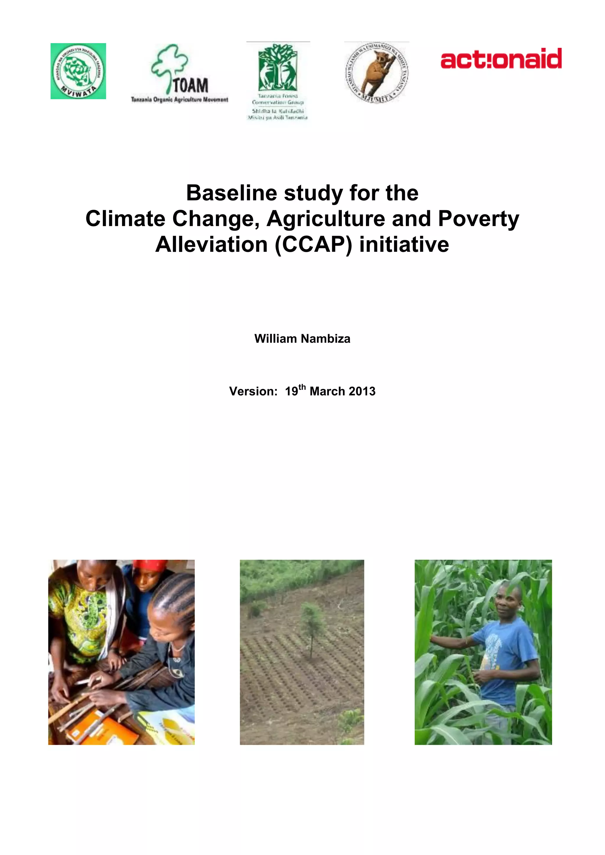 The document provides a baseline study for a climate change, agriculture and poverty alleviation initiative in Tanzania. Key findings of the study include: