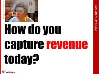 Baselining is documenting existing sales and marketing assumptions, beliefs, and opportunities. It involves capturing how revenue is currently generated across different channels and understanding the profitability of each channel. This provides a baseline to identify areas for improvement, such as underperforming channels where more investment could generate new revenue opportunities or channels where spending exceeds industry averages, representing inefficiencies.