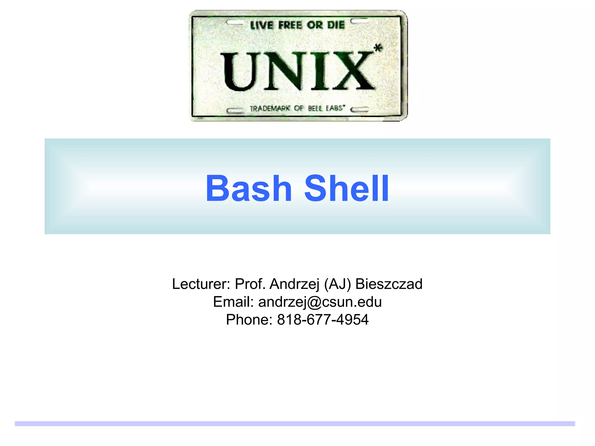 The document discusses the Bash shell, which is the most popular shell in Linux. It is an sh-compatible shell that incorporates useful features from other shells like Korn and C shells. Bash can be used both interactively and for scripting purposes. The document provides examples of basic Bash scripts that use variables, command substitution, arithmetic evaluation, and conditional statements. It also discusses environmental variables and the read command.