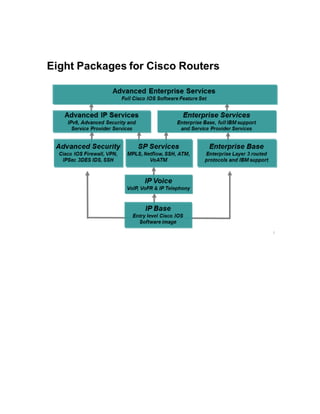A router is a networking device that operates at the network layer and connects different networks. It selects the best and shortest path for packet forwarding based on its routing table, and can filter traffic using access control lists. Routers have various ports including console, auxiliary, Ethernet LAN ports, and serial WAN ports used to connect to other routers and modems. The Cisco IOS software controls router functions and is loaded during bootup from flash memory or a TFTP server.