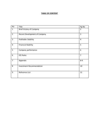 Group members analyzed financial ratios and stability ratios to evaluate MK Land Holding Bhd for investment recommendation. While some ratios improved from 2012-2013 like return on equity and inventory turnover, the group recommends against investing due to MK Land's share price consistently decreasing more than the KLCI index. The group also notes the interest coverage ratio could be higher.