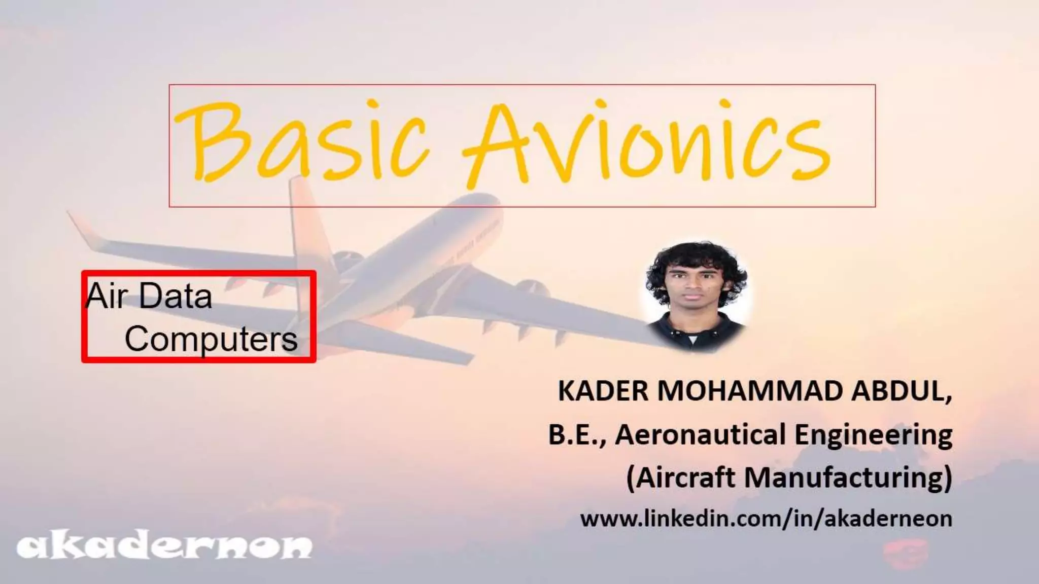A simple Presentation on Basic Avionics. It will help students to learn and understand Avionics faster. Doubtlessly, It will make Avionics Easier. Presented By. KADER MOHAMMAD ABDUL, B.E., Aeronautical Engineer ( Aircraft Manufacturing) https://www.linkedin.com/in/akaderneon/
