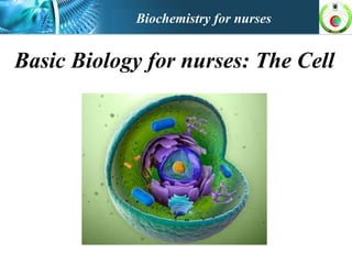 This document provides an overview of cell biology for nurses. It describes the basic components and functions of eukaryotic cells, including the cell membrane, cytoplasm, organelles, and nucleus. Specifically, it discusses the structure and roles of the phospholipid bilayer, membrane transport mechanisms like passive diffusion and active transport via pumps, the cytoskeleton, ribosomes, mitochondria which generate energy in the form of ATP, and other organelles like the endoplasmic reticulum, Golgi apparatus, and lysosomes.