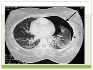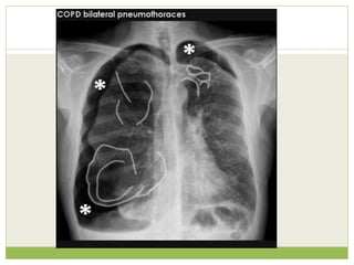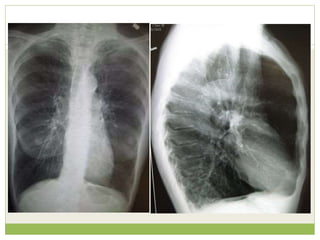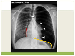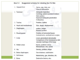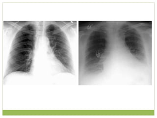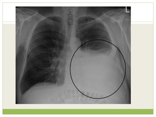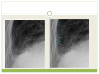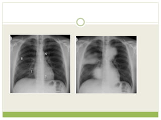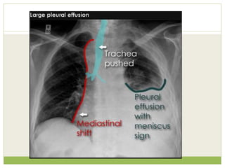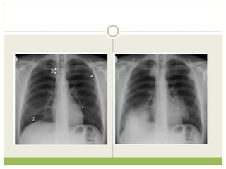This document provides a comprehensive overview of basic chest X-ray interpretation, outlining radiographic views, anatomy, and common lung conditions. It discusses techniques for identifying various issues such as pleural effusion, pneumonia, and pneumothorax, including the importance of film quality and systematic approaches to interpretation. Key points and clinical implications, such as potential findings correlated with patient symptoms, are also highlighted.