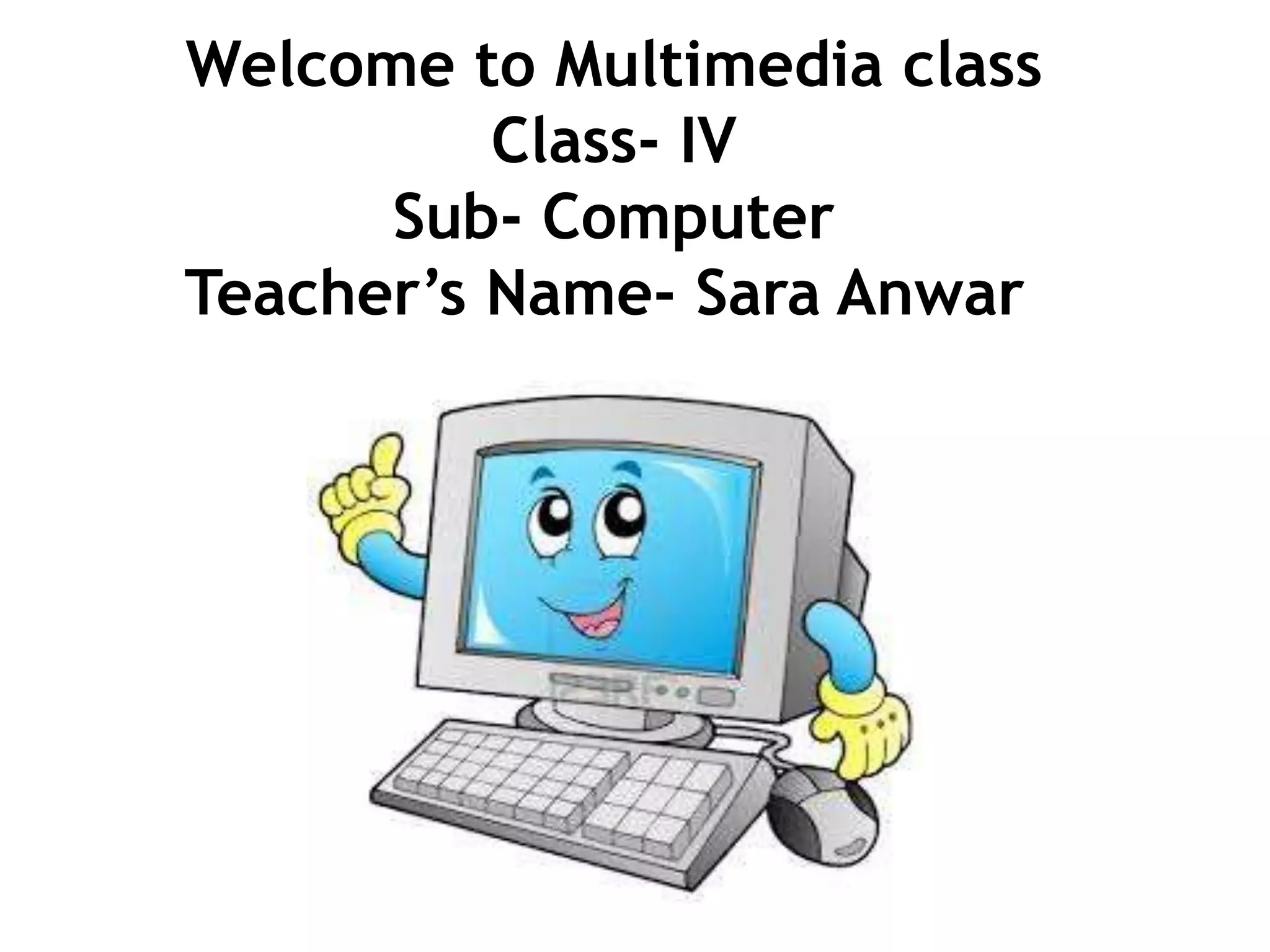 This document provides an introduction to a multimedia class about computers. It discusses what a computer is, what computers do, and the main parts of a computer. A computer is a machine that accepts data from users as input, processes that data, and provides output in the form of results. Computers have three main types of devices - input devices to enter data, output devices to display results, and storage devices that serve as the computer's memory. Specific devices mentioned include the mouse, monitor, printer, headphones, and speaker. The document concludes by listing some common uses of computers such as checking spelling, solving math problems, listening to music, drawing pictures, and using the internet.
