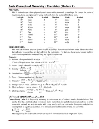 Chemistry (Module 1) introduces several key concepts: