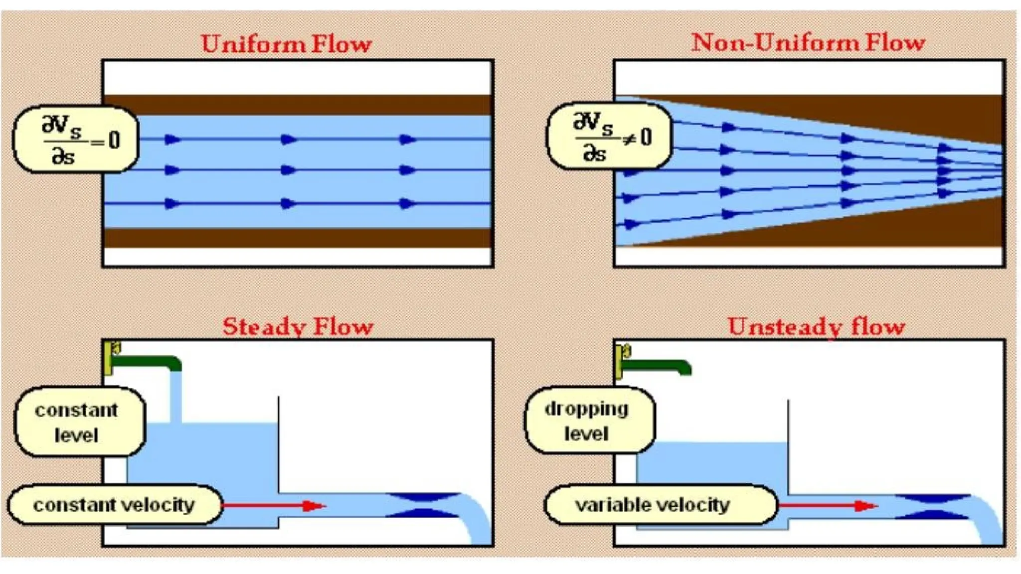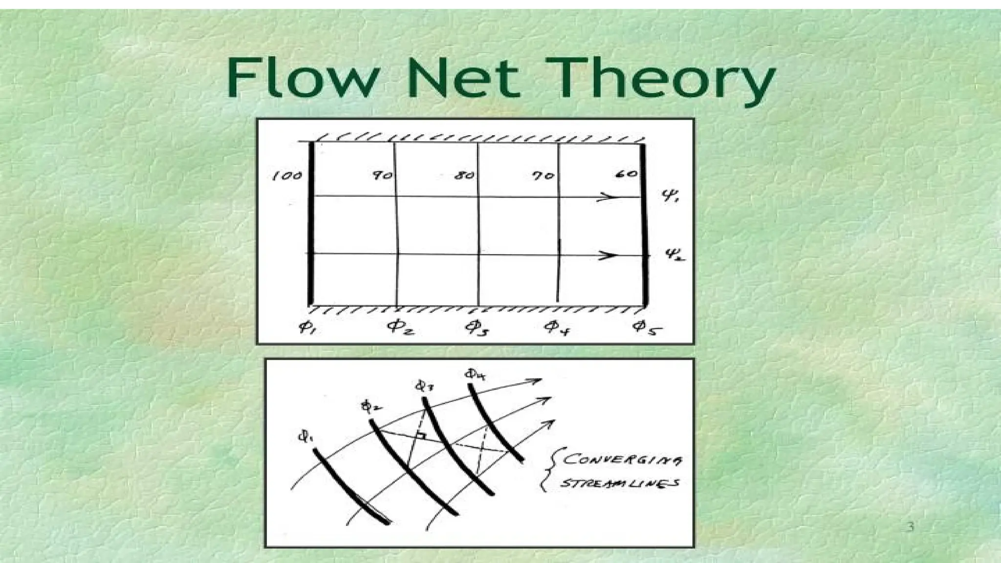 The document discusses basic concepts of fluid flow, including classifications of flows such as streamlines and streak-lines, and key mathematical formulations like Euler's and Bernoulli's equations. It explains the significance of velocity potential and stream functions in determining if flows are rotational or irrotational based on Laplace's equation, along with methods for constructing flow nets. Additionally, it outlines various techniques for identifying ideal flow patterns and determining efficient boundary shapes.