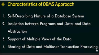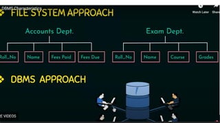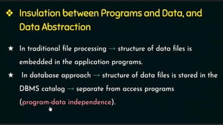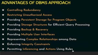 #23 Controlling redundancy:-in traditional approach each users has its OWN files in dbms approach views of different users integrated