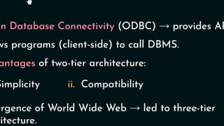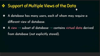 Multiple user interfaces-(query languages->casual users)programming language interfaces->application programmers,forms->parametric users,menu driven interfaces->standalone users