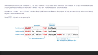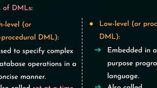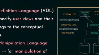 Manipulate:-Querying the database to retrieve specific data, updating database and