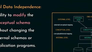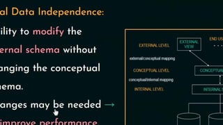 In dbms any change in strcture of the data files it will not affect the program that is program data independance